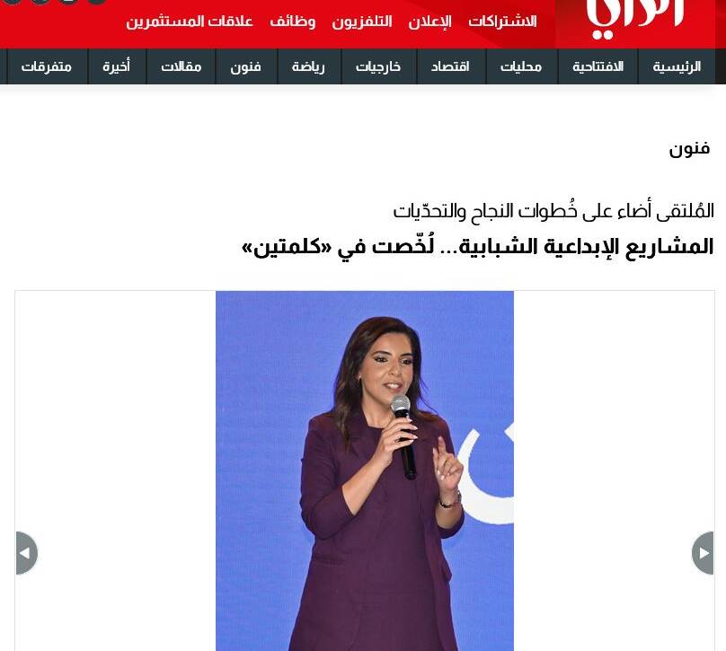 ملتقى «كلمتين».. يرسّخ دور الشباب في دعم الصناعات الإبداعية والفنية MediaNovember 12, 20250Views0Likes0CommentsRead More